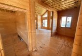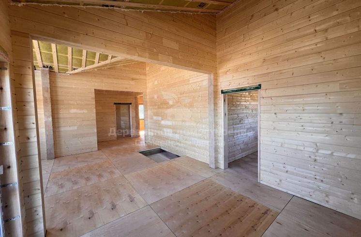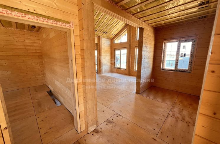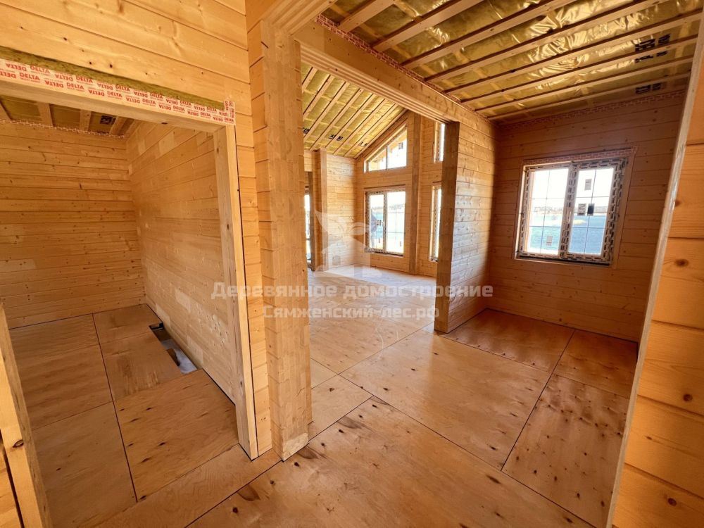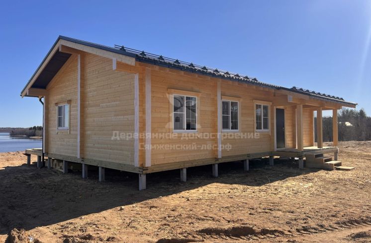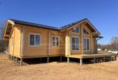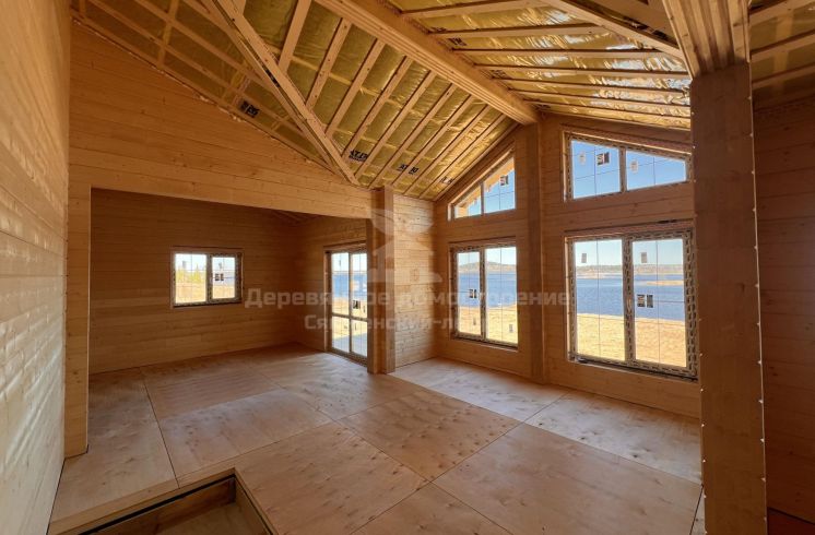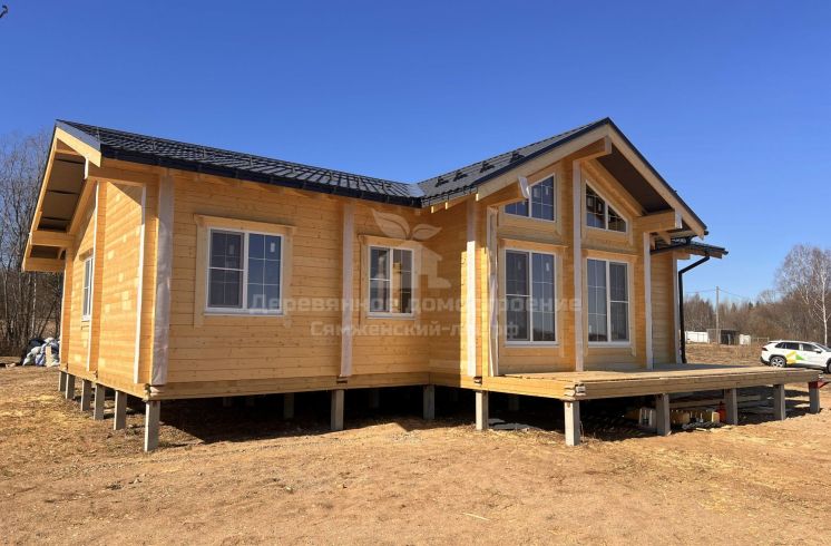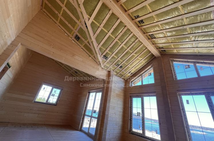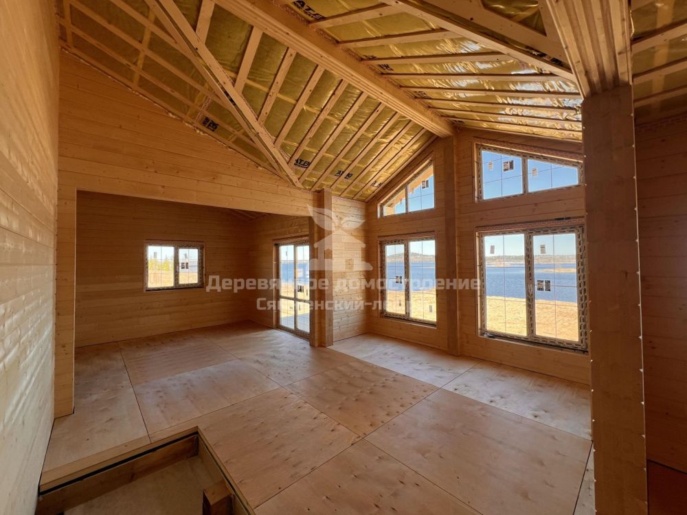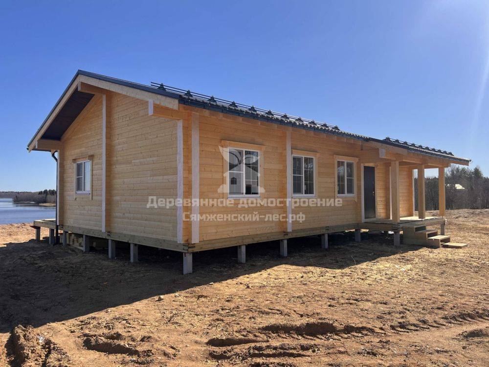 Фундамент выполнен на железобетонных сваях. Сборка дома велась в сложных погодных условиях, включая сильный ветер, но все работы были завершены в течение 2 месяцев.