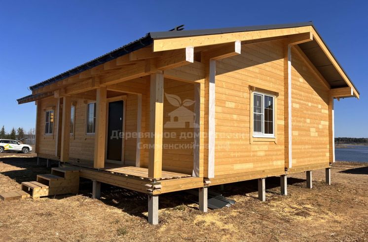 Проект демонстрирует, как современный дом из клееного бруса может органично вписываться в природное окружение и усиливать преимущества участка.