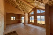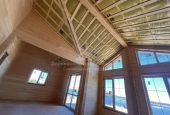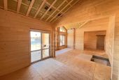 Дом выполнен из клееного бруса — технологичного материала с высокой стабильностью геометрии. Это решение позволяет реализовывать современные архитектурные проекты с большими оконными проёмами и комфортным микроклиматом.