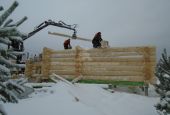 После чего сразу же началась рубка сруба. Ход рубки периодически показывался на сайте фирмы.