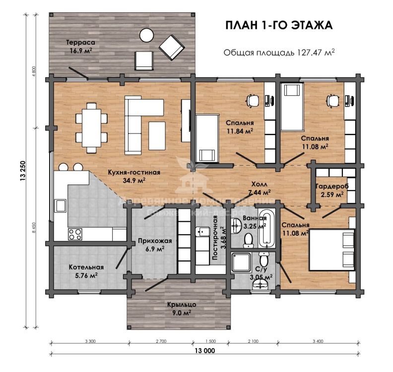 В начале декабря мы в первый раз обсудили проект с Андреем, а уже в конце согласовали проект и подписали договор (в семейную ВТБ с эскроу). Изменения в типовой проект (отказ от постирочной в пользу увеличения двух санузлов, добавление нижнего венца бруса для теплого пола и т.д.) делали бесплатно.