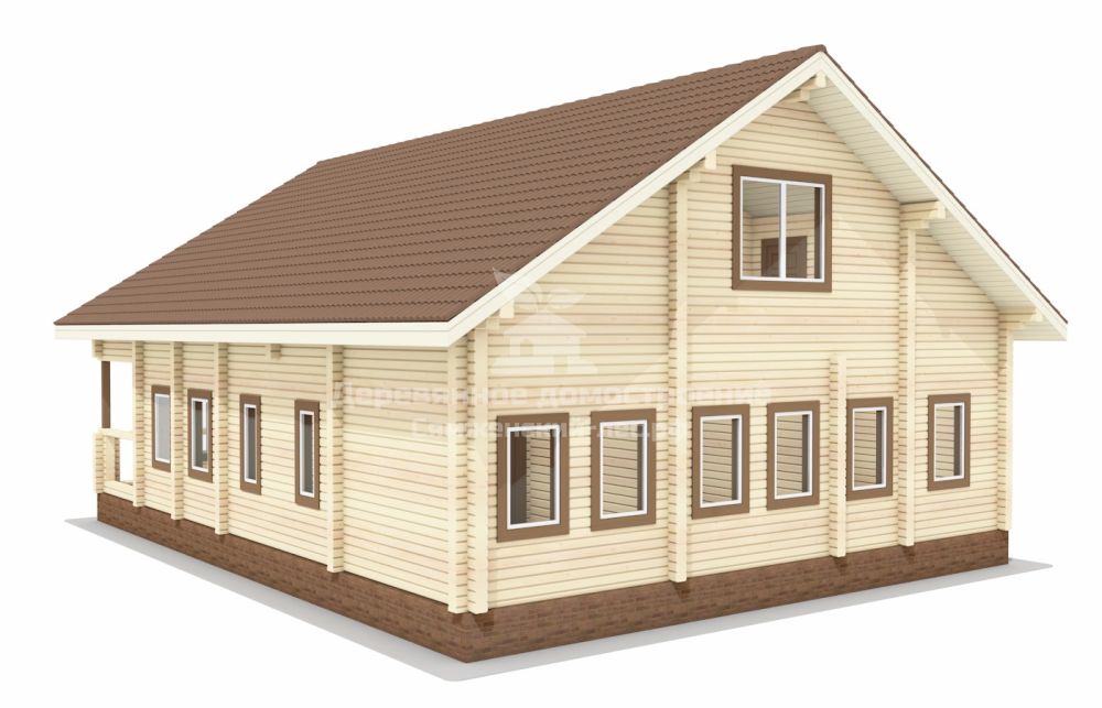Проектом дома в основном занимались сами заказчики, мы лишь помогли привести чертежи в соответствие с особенностями профилированного бруса. Заказчики хотели построить деревянный дом, как раньше строили в деревнях. Отличительной чертой архитектурного стиля стало множество небольших окон, на которые при отделке установят резные наличники и ставни.