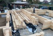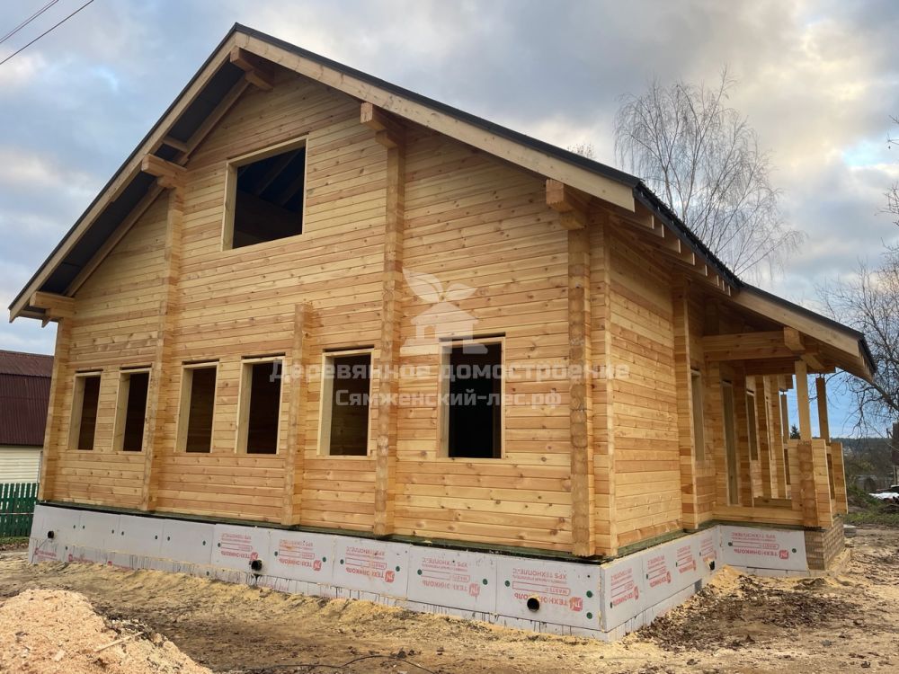 Завершили строительство самого большого дома в этом году. Габаритные размеры составляют 12х14 метров, общая площадь — 260 квадратных метров, использовано 112 кубических метров профилированного бруса. Работа по сборке заняла 30 дней.