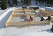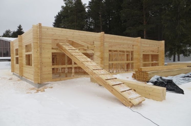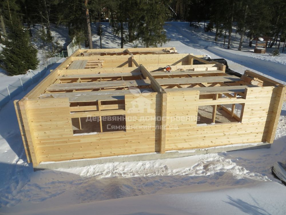 На объекте трудилась бригада Артёма Бешеля. Гараж оказался не слишком сложным для сборки – на нём коллеги, по сути, разминались. А вот на строительстве дома пришлось попотеть! Ещё бы! Площадь дома–265 м²! Многоскатная крыша 367 м² на двух уровнях! Четырехстоечные столбы, массивные стропила из бруса, многочисленные узоры на выносах! В общем, чтобы воплотить все задумки архитектора, ребятам потребовалось 2 месяца. Считаем, справились они на славу! Артём, Женя и Паша – вы огромные молодцы! Спасибо за труды!