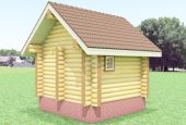 За основу бани взяли проект «Мирка» (33 м²) из нашего каталога. Хозблок получился совсем небольшим (4*4), с перерубом по центру. Супруги планируют разместить там мастерскую, а также хранить садовый инвентарь.