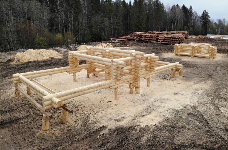 Такое сооружение из бревна мы создаём впервые. Изготовление сруба и его установку поручили опытной бригаде Евгения Муравьёва. Тем более что ребята уже знакомы с заказчиком, ведь именно они в 2021 году установили сруб дома.