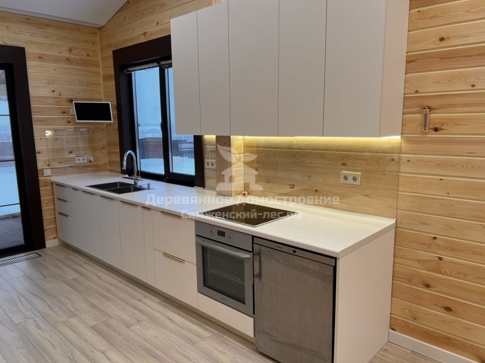 - Стоимость дома в комплектации “под ключ”, как на фото (фундамент — ж/б плита, стены из профилированного бруса толщиной 190 мм, кровля с металлочерепицей, установка окон и входной двери, утепление потолка по скатам и балкам 250 мм, инженерные сети, внутренняя отделка, мебель, бытовая техника) — 14 млн рублей. Цена актуальна на 12.01.2026