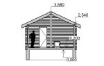 Брусовая баня состоит из парной (площадью 5,28 м²) с помывочной (4,06 м²) и санузлом (1,03 м²), который отделен каркасными перегородками. Екатерина и ее семья обожают чаепития у камина. Потому под комнату отдыха в проекте отведено 12,26 м². Внутренняя планировка позволяет поставить в парилке каменку с открытой топкой, выведя дверцу в общее помещение. Именно она создает ту непередаваемую уютную атмосферу.