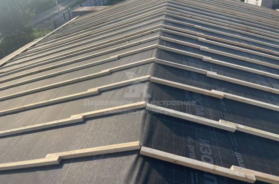 - Правильный монтаж кровельного пирога: ветрозащитная мембрана, контробрешетка, обрешетка с шагом под покрытие металлочерепицей.
