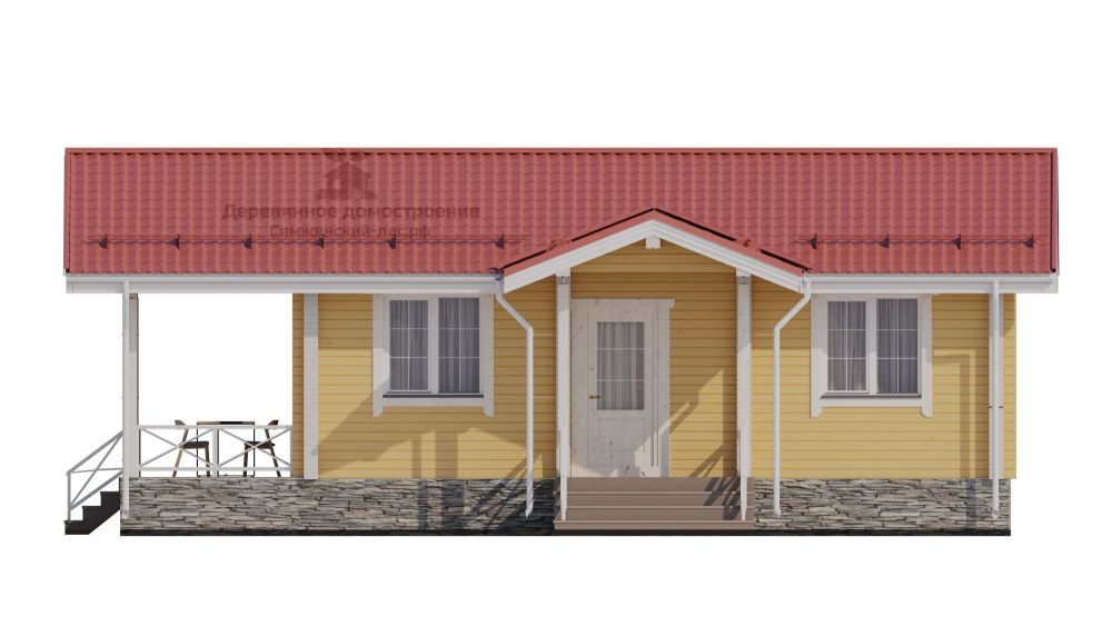 Одноэтажный дом «Янтарь» из бруса с просторной террасой