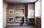 Правое крыло дома занимают две спальни (по 10,8 м2). В детской можно установить двухъярусную кровать, увеличив количество спальных мест без ущерба свободной площади. В этом деревянном коттедже один санузел (4,07 м2). Рядом с ним располагается котельная (6,10), которую можно использовать как кладовую.