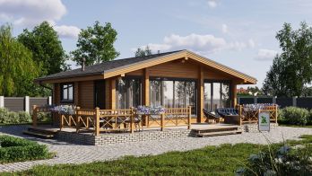 Проект деревянного дома предусматривает наличие гостиной-спальни с местом для приготовления еды и совмещенного санузла. Приятным дополнением будет удобная терраса , которая позволит наслаждаться видами природы во время утреннего кофе или вкусного ужина.